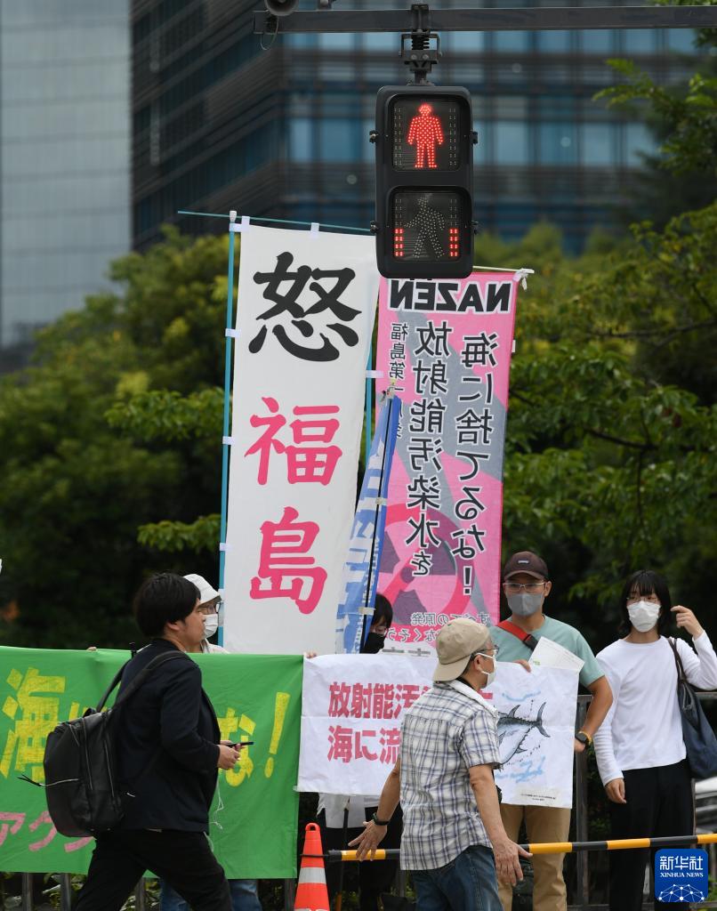 8月22日,日本民眾在東京首相官邸前緊急集會(huì ),抗議政府無(wú)視民意啟動(dòng)核污染水排海。
