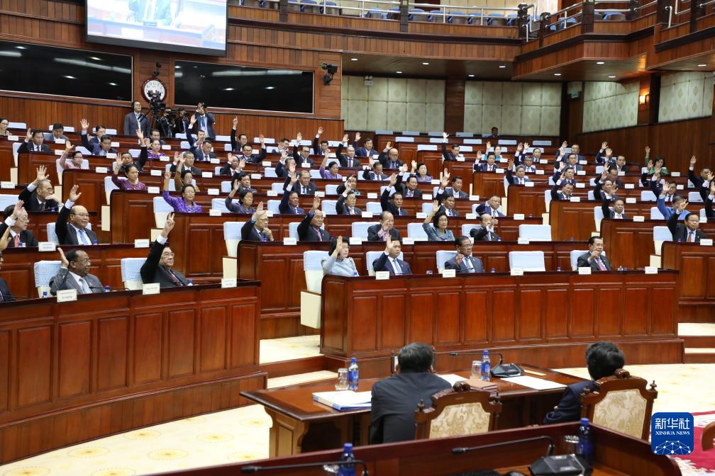 這是8月22日在柬埔寨首都金邊拍攝的柬埔寨第七屆國會(huì )第一次會(huì )議表決現場(chǎng)。