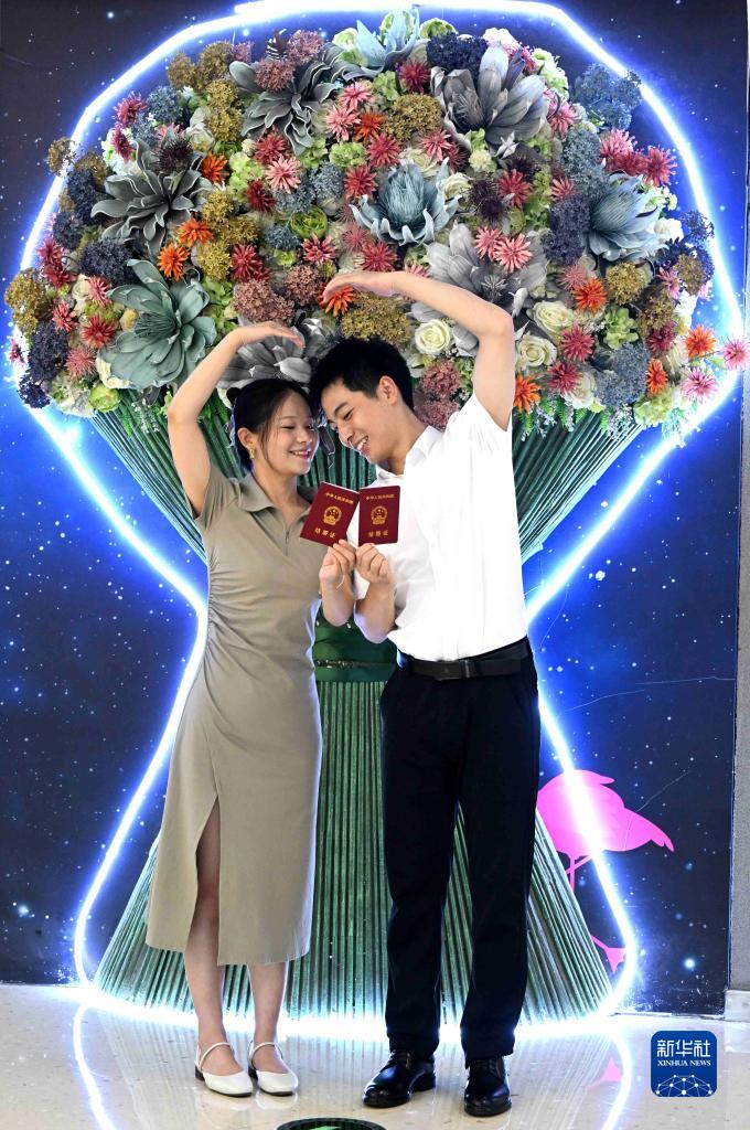 當日是七夕,這一天是我國民間傳說(shuō)中牛郎織女鵲橋相會(huì )的日子,許多新人選擇在這一天登記結婚。