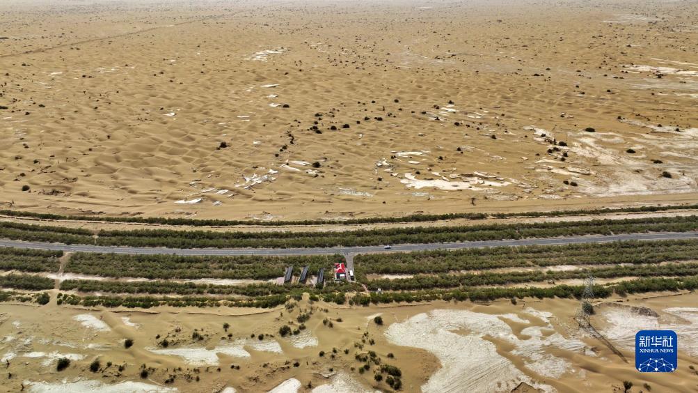在位于新疆的塔克拉瑪干沙漠腹地,中國首條貫穿塔克拉瑪干沙漠的等級公路——塔里木零碳沙漠公路,像一條綠色長(cháng)龍蜿蜒曲折,在沙漠深處延伸。