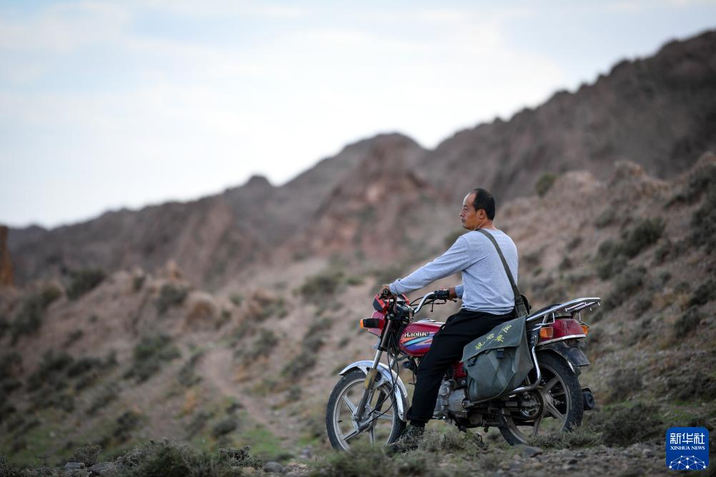 8月20日,董海寧騎摩托車(chē)巡查賀蘭山沿線(xiàn)的明長(cháng)城永寧段。