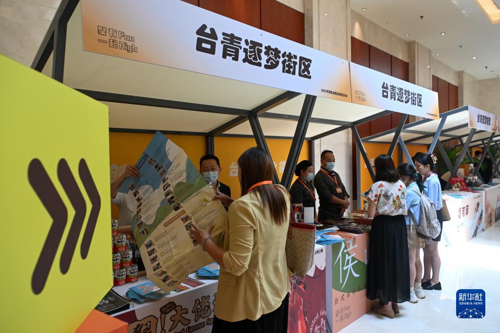 8月22日,參會(huì )嘉賓在2023天津臺企新品采購洽談會(huì )臺青逐夢(mèng)街區參觀(guān)。