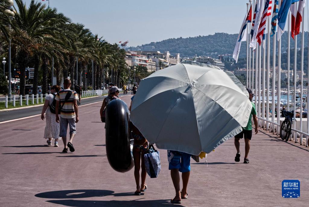 8月22日,人們在法國南部城市尼斯海邊消暑。