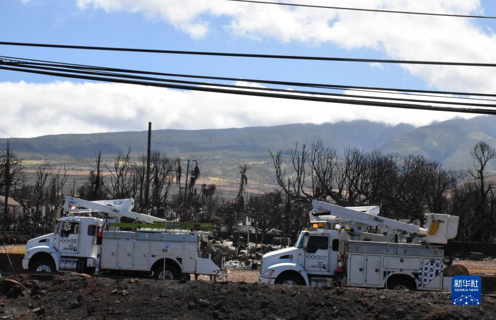 這是8月22日在美國夏威夷州拉海納鎮拍攝的修復工程車(chē)輛。