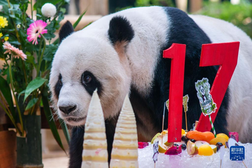 在馬來(lái)西亞國家動(dòng)物園大熊貓保護中心內,中國旅馬大熊貓夫婦“興興”和“靚靚”23日迎來(lái)了17歲生日。