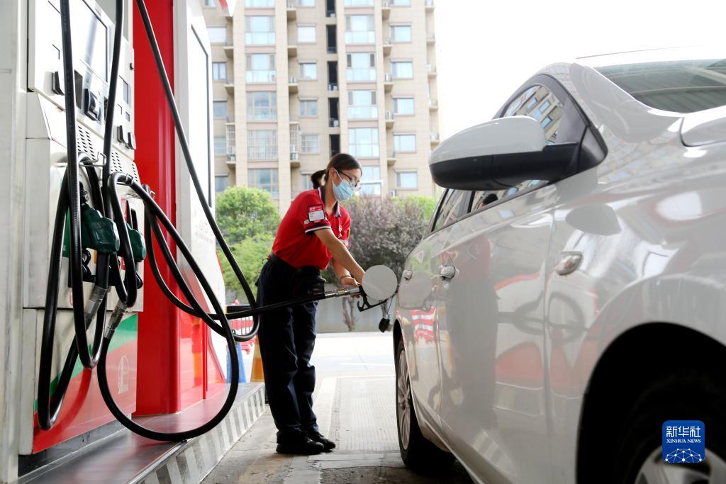 8月23日,在江蘇省連云港市連云區一加油站,工作人員給汽車(chē)加油。