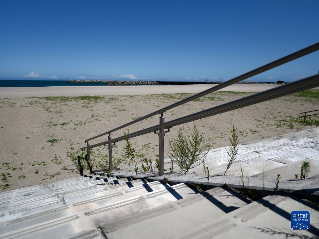 8月22日,日本福島縣相馬郡新地町釣師浜海水浴場(chǎng)的臺階上雜草密布。新華社記者 張笑宇 攝
