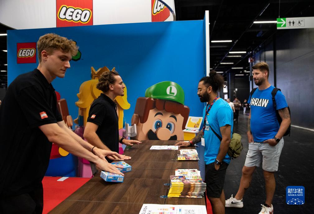 8月23日,人們在德國科隆舉辦的科隆國際游戲展上與參展商交流。新華社記者 張帆 攝