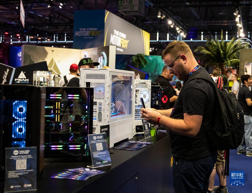 8月23日,一名男子在德國科隆舉辦的科隆國際游戲展上拍攝電腦設備。新華社記者 張帆 攝