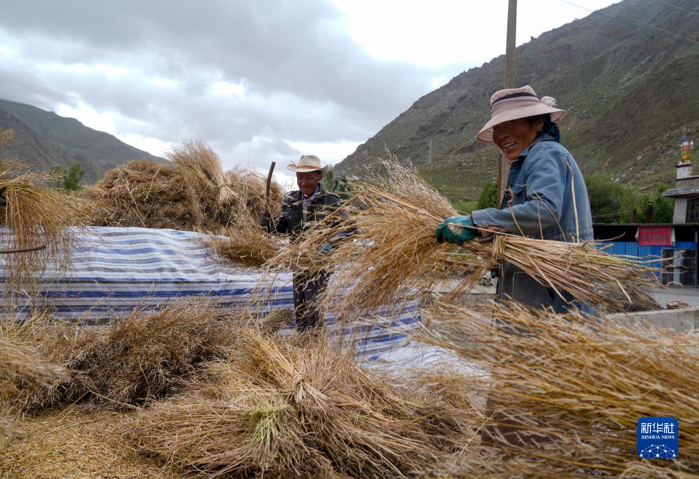 目前,西藏各地進(jìn)入秋收時(shí)節。西藏山南市乃東區的農民在抓緊收獲作物。