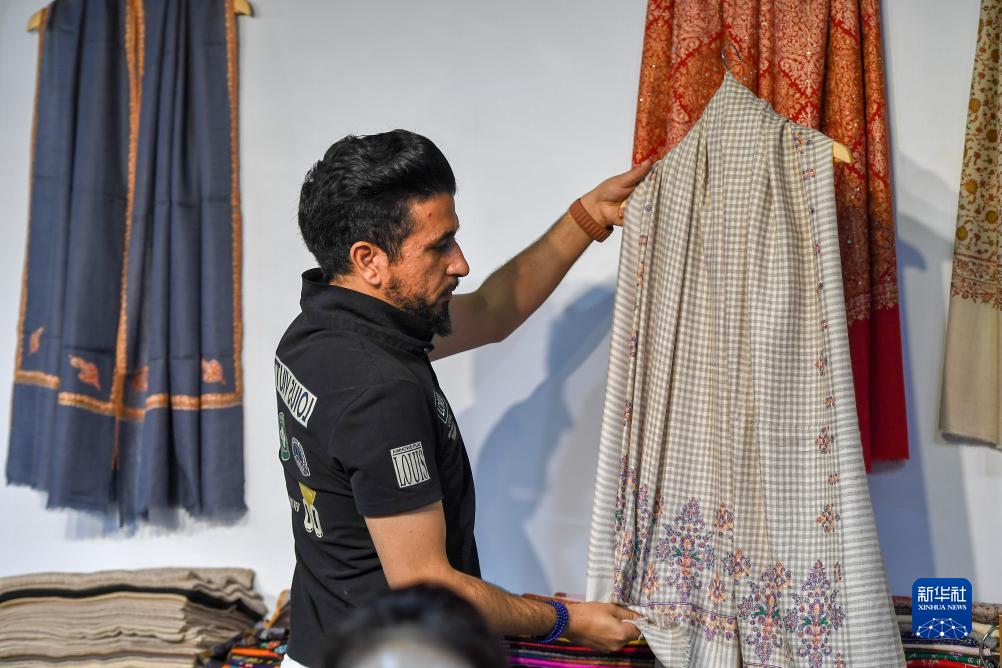 8月23日,在第十四屆中國—東北亞博覽會(huì )國際商品館,伊朗參展商懸掛紡織品。