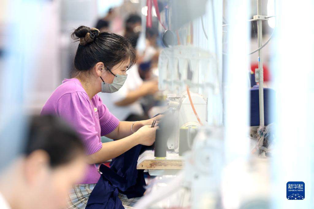 8月24日,在福建省福州市倉山區一家制衣企業(yè),工人生產(chǎn)服裝產(chǎn)品。