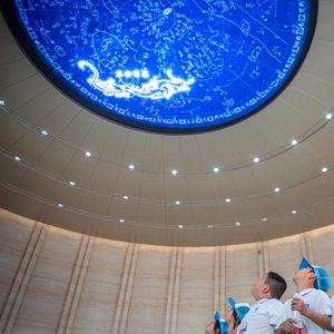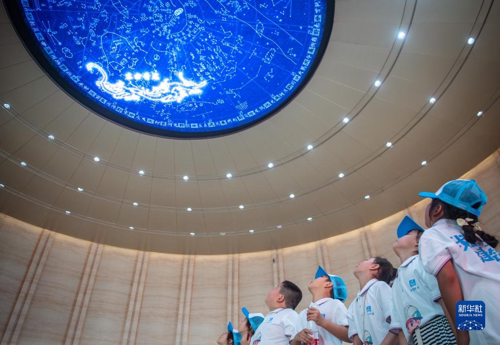 8月24日,留守兒童在中國建筑科技館參觀(guān)。