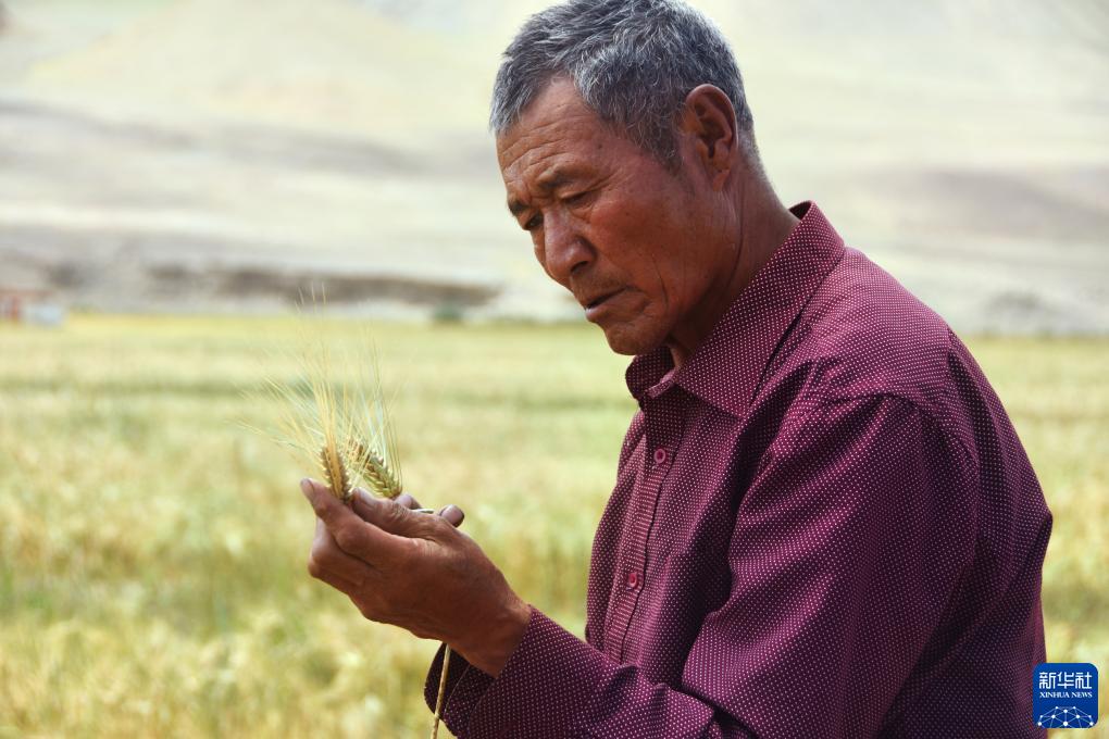 “自力更生,艱苦奮斗?!笔蔷妹览先说目陬^禪。家人常勸他不要再來(lái)地里勞作,他卻說(shuō):“雖然現在生活條件越來(lái)越好,但是我們不能忘本?!弊咴谇囡锢?,老人不時(shí)俯下身子查看青稞長(cháng)勢。有的青稞生長(cháng)狀況不佳,他便會(huì )皺起眉頭,與村民們商量解決辦法?!跋乱徊竭€是應該繼續提高機械化水平,讓青稞長(cháng)得更多更好?!本妹览先诵χ?zhù)說(shuō)。