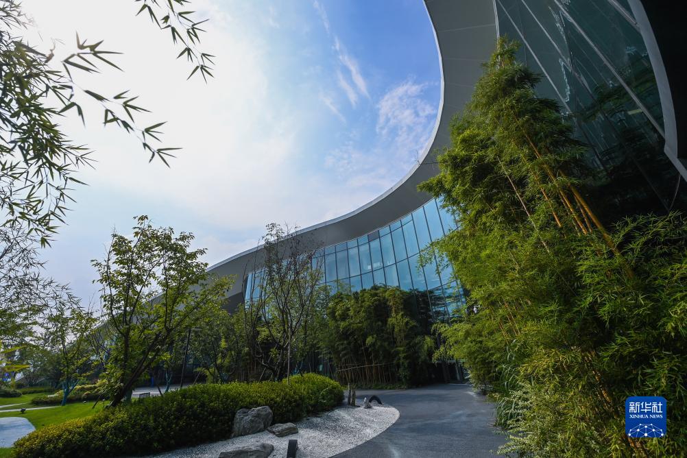 這是8月24日拍攝的杭州富陽(yáng)水上運動(dòng)中心的中庭花園,花園里種植的植物使用回收的雨水進(jìn)行澆灌。新華社記者 徐昱 攝