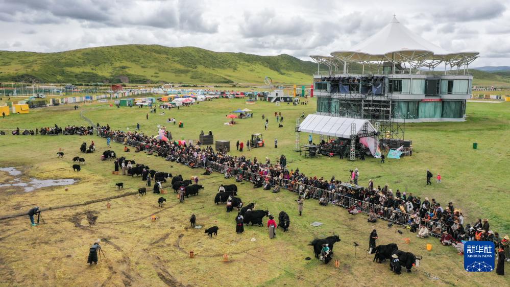 這是8月25日在四川省阿壩藏族羌族自治州紅原縣雅克音樂(lè )牧場(chǎng)拍攝的牦牛產(chǎn)奶量比賽現場(chǎng)(無(wú)人機照片)。