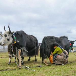 紅原大草原上的牦牛產(chǎn)奶量比賽