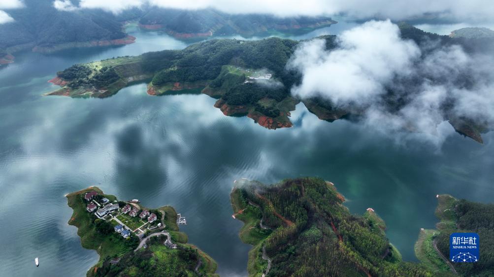 8月25日拍攝的貴州省黔西南布依族苗族自治州興義市萬(wàn)峰湖景區風(fēng)光(無(wú)人機照片)。新華社記者 楊楹 攝