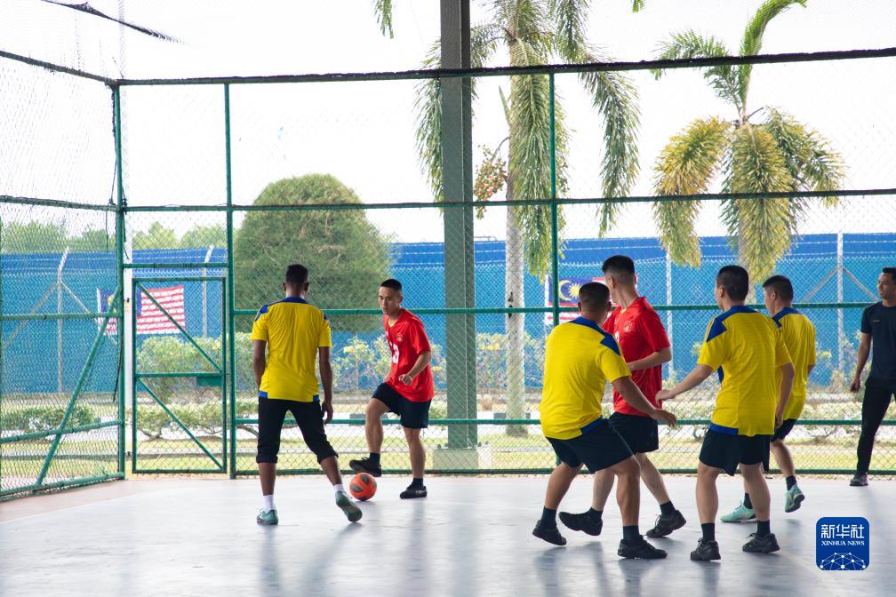 8月18日,在馬來(lái)西亞巴生,中馬官兵進(jìn)行足球友誼賽。