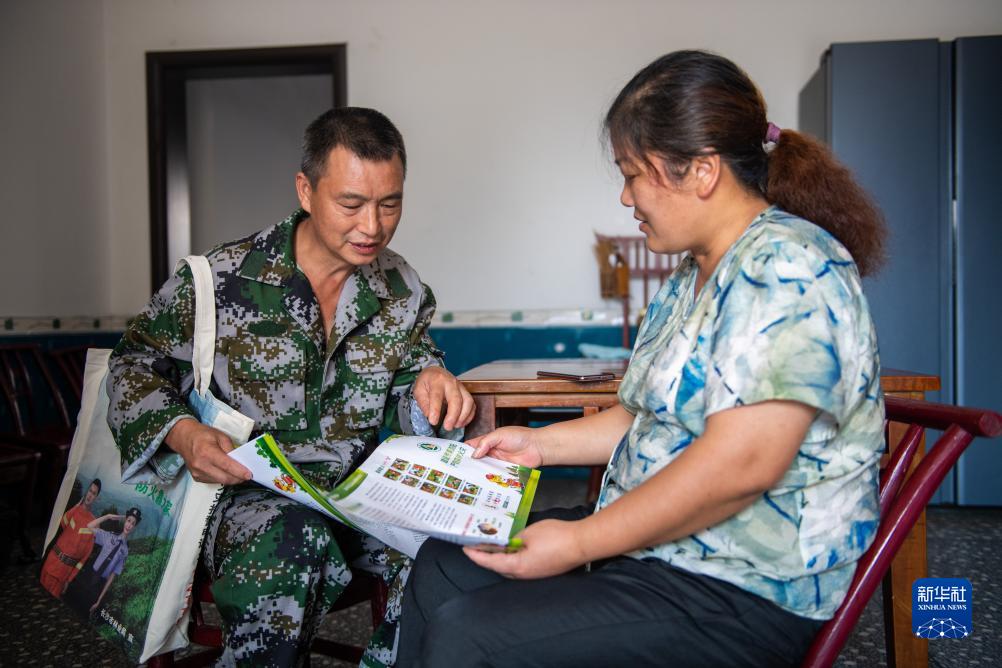 8月24日,在瀏陽(yáng)市金剛鎮平灣村,黃蔚谷(左)向村民宣傳森林防火和古樹(shù)保護相關(guān)知識。