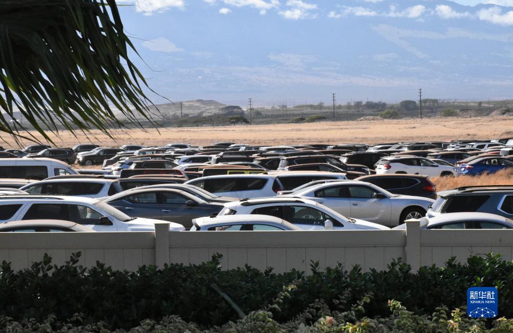 8月24日,美國夏威夷毛伊島卡胡盧伊機場(chǎng)外的一片空地上停放著(zhù)租車(chē)公司沒(méi)有租出去的汽車(chē)。