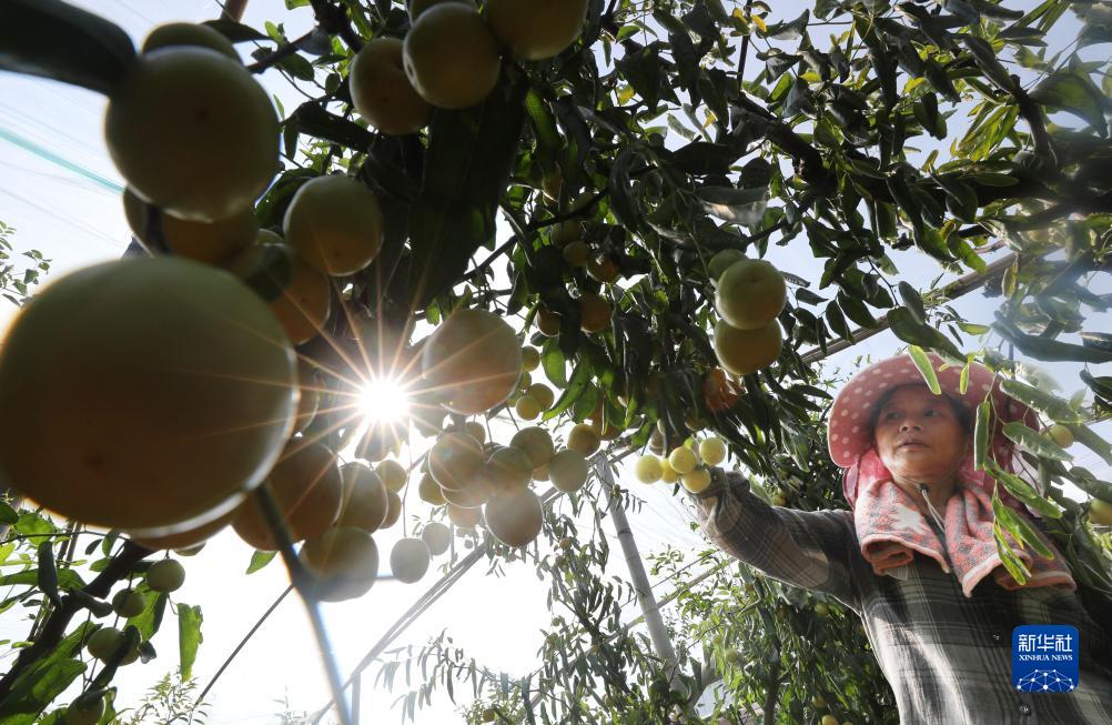 8月26日,在湖南省衡陽(yáng)市衡山縣永和鄉冬棗種植基地,當地村民在采摘冬棗。