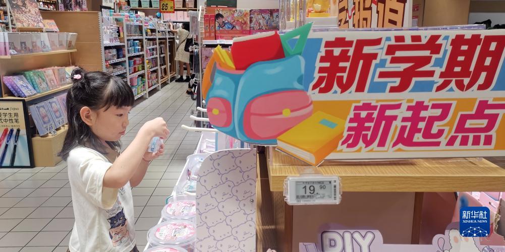 8月26日,小朋友在浙江省嘉興市南湖區一家大型超市內選購文具(手機照片)。