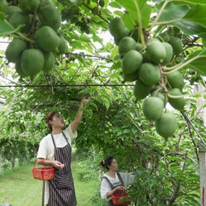 8月26日,秦皇島市海港區駐操營(yíng)鎮花廠(chǎng)峪村軟棗獼猴桃種植基地的工人在采摘軟棗獼猴桃。