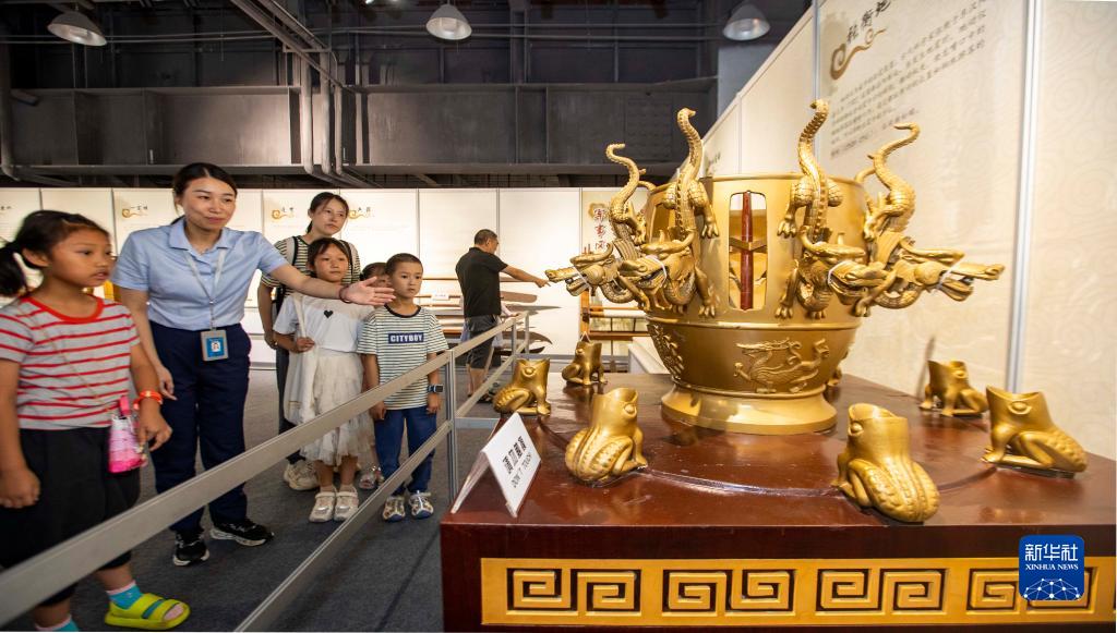 8月27日,工作人員在江蘇泰州科技館中國古代科技展區給小朋友講解。
