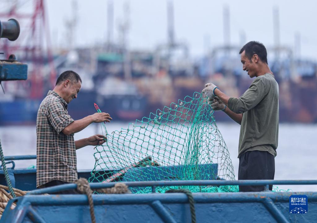 8月27日,在石島漁港碼頭,漁民整理漁網(wǎng),迎接開(kāi)海。