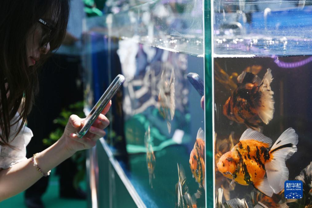 8月28日,觀(guān)眾在觀(guān)賞金魚(yú)。