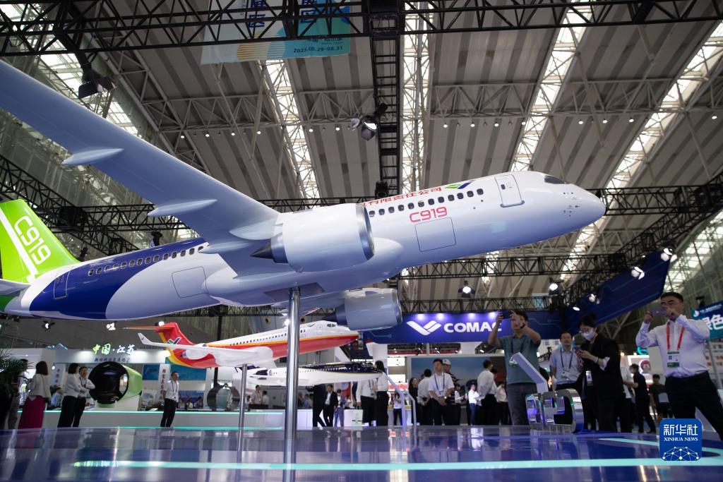 8月29日,參會(huì )者在中國商飛公司展廳拍攝C919飛機模型。