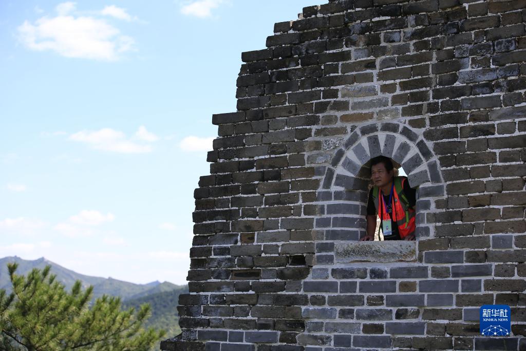 8月29日,俞海文在長(cháng)城一座敵樓上瞭望。