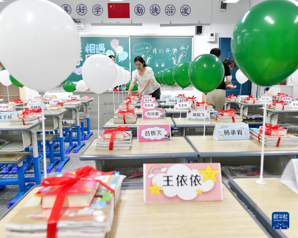 8月30日,教師在浙江省建德市明鏡小學(xué)一年級的教室里布置,為開(kāi)學(xué)營(yíng)造溫馨的環(huán)境。