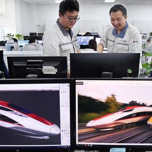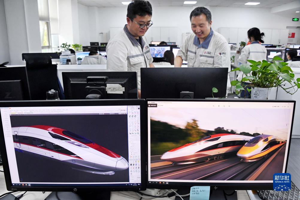 8月29日,中車(chē)青島四方設計部門(mén)工作人員在交流、討論。