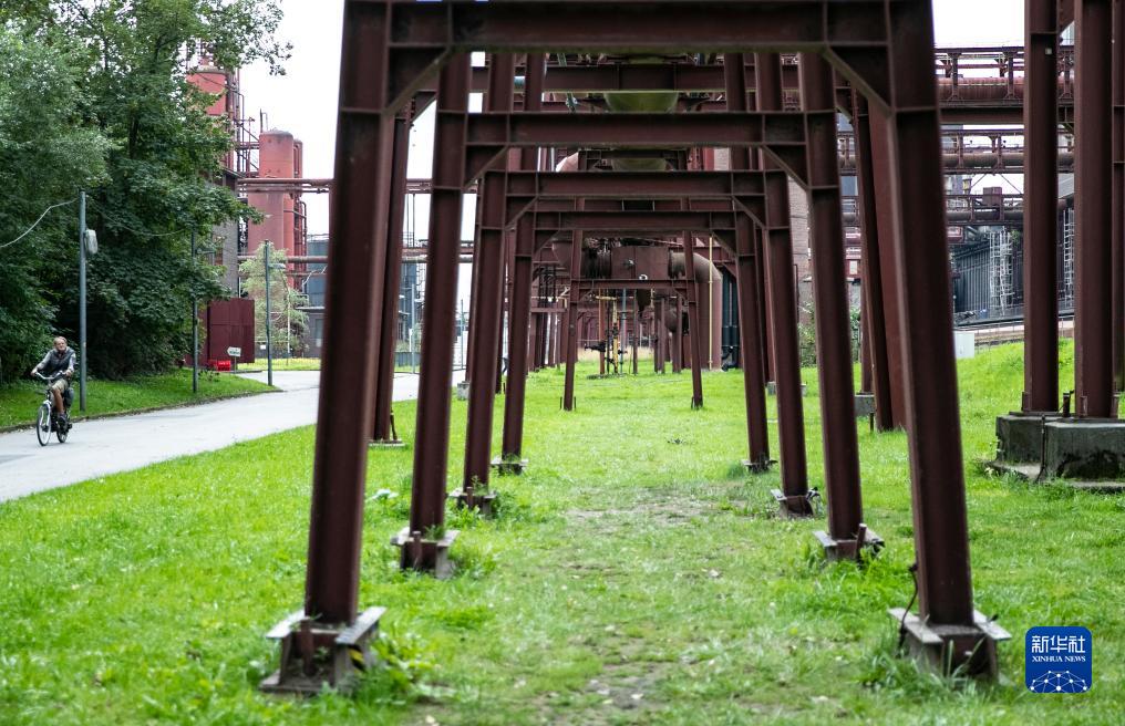 8月16日,一名男子在德國埃森的關(guān)稅同盟煤礦工業(yè)區騎車(chē)。