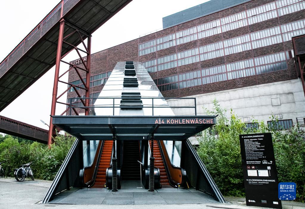 這是8月16日在德國埃森的關(guān)稅同盟煤礦工業(yè)區拍攝的魯爾博物館電梯。該電梯由原工業(yè)區的傳送帶改建而成。