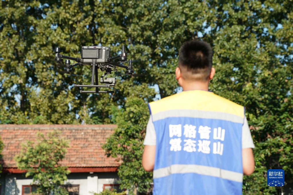 8月29日,西安市長(cháng)安區灃峪國有生態(tài)林場(chǎng)的工作人員操縱無(wú)人機巡山。