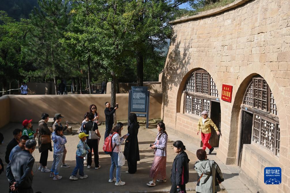 8月29日,在陜西延安,游客參觀(guān)楊家嶺革命舊址內的毛澤東舊居。