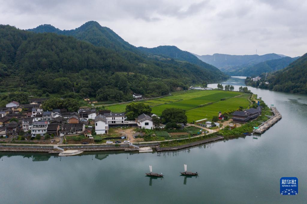 8月30日拍攝的緊鄰甌江的緊水灘鎮石浦村,這也是當地“十里云河”鄉村旅游的特色景觀(guān)村落(無(wú)人機照片)。石浦村位于云和縣縣城北部,該村地理位置優(yōu)越,自然風(fēng)光秀麗,是省級重點(diǎn)歷史文化古村落保護村。