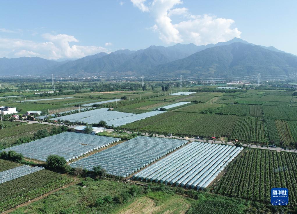 位于西安市鄠邑區玉蟬街道的葡萄種植大棚(8月30日攝,無(wú)人機照片)。