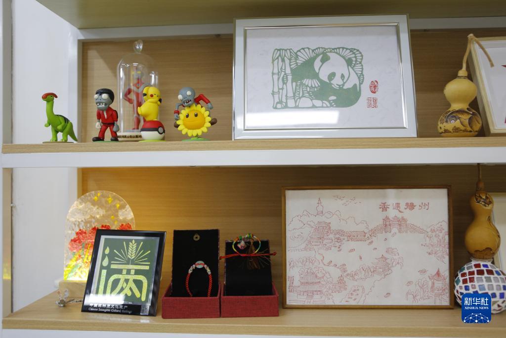 這是8月30日在江蘇揚州小滿(mǎn)助殘就業(yè)創(chuàng )業(yè)基地拍攝的手工藝品展示柜。