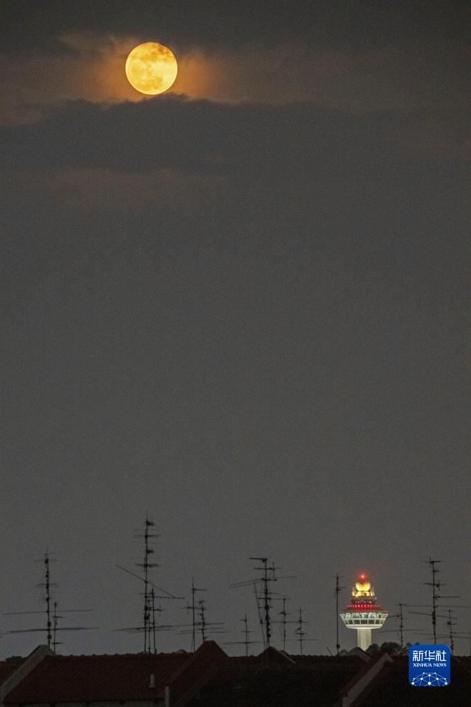 這是8月31日在新加坡拍攝的“超級月亮”。
