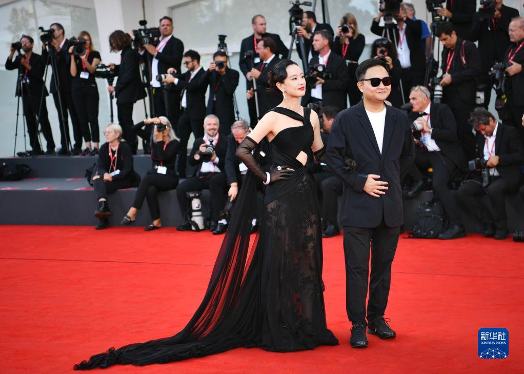 8月30日,在意大利威尼斯,導演鄔浪(右)和演員李夢(mèng)亮相開(kāi)幕式紅毯。