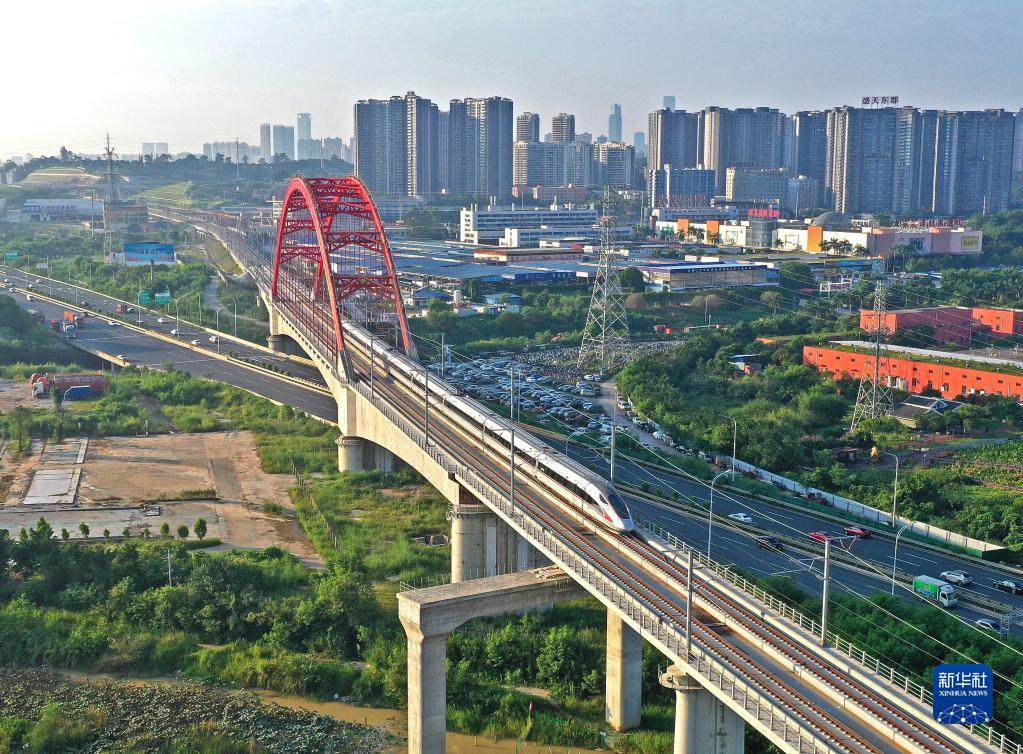 這是8月31日在廣西南寧市拍攝的由南寧東開(kāi)往貴陽(yáng)北的G4308次列車(chē)(無(wú)人機照片)。