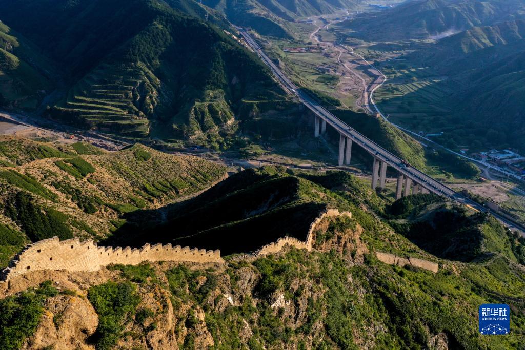 這是8月30日拍攝的新廣武—白草口段長(cháng)城(無(wú)人機照片)。