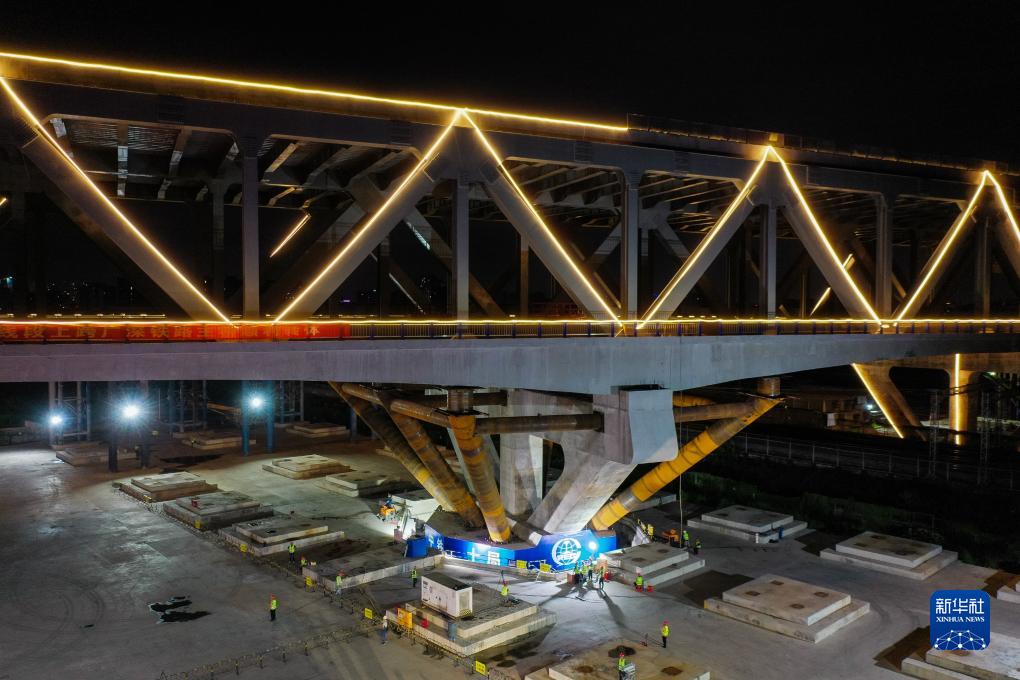 跨鐵路雙層公路橋完成轉體