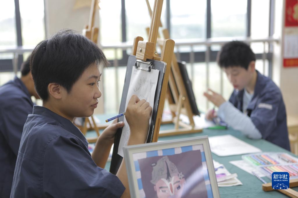 8月30日,在鹽城市殘疾人托養中心作訓室,學(xué)員進(jìn)行繪畫(huà)訓練。