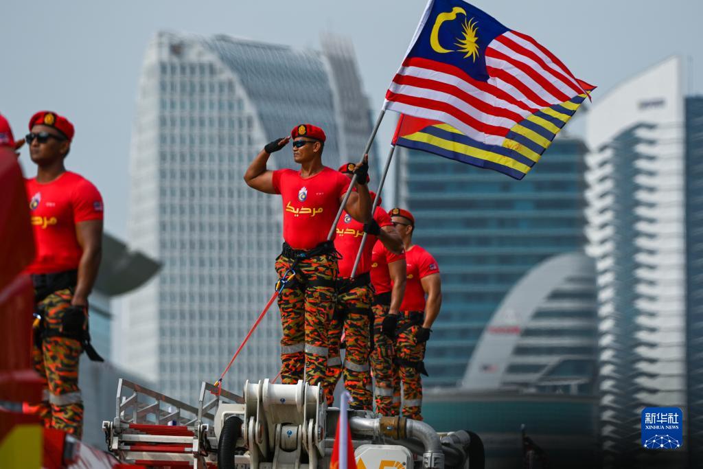 8月31日,消防員在馬來(lái)西亞普特拉賈亞參加馬來(lái)西亞獨立66周年慶典活動(dòng)。