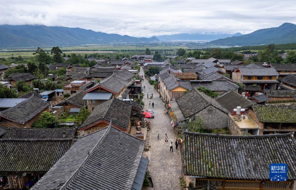 游客在麗江市玉龍納西族自治縣白沙鎮玉湖村觀(guān)光游覽(8月28日攝,無(wú)人機照片)。